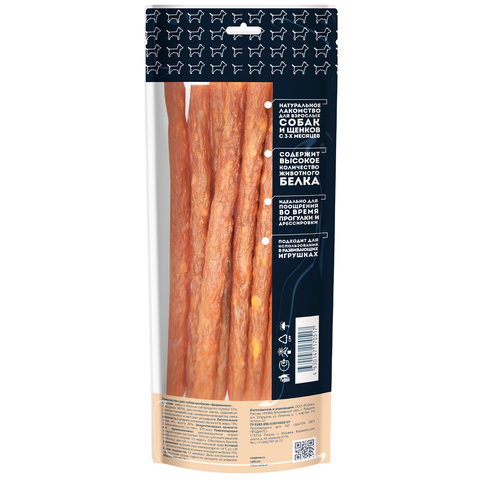 Мнямс лакомство для собак колбаски «фирменные» - вкусное и полезное лакомство с большим содержанием птицы и мяса для собак и щенков старше 3-х месяцев. Обладают высокой вкусовой привлекательностью, благотворно влияют на нервную и сосудистую системы, содержат розмарин- натуральный источник магния, калия, натрия, железа и фосфора. Идеально подходят в качестве ежедневного угощения и поощрения во время тренировок.
