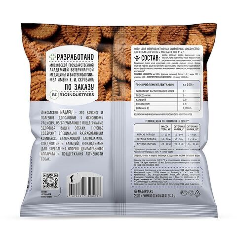 Лакомство налапу - это вкусное и полезное дополнение к основному рациону, обеспечивающее поддержание здоровья вашей собаки. Печение содержит специально разработанный комплекс, включающий глюкозамин, хондроитин и кальций, необходимые для укрепления опорно-двигательного аппарата и поддержания активности собак.
