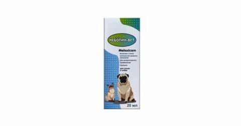 Неболин-вет это суспензия для орального применения (флаконы по 5,10 и 20 мл), предназначенная для собак и кошек в качестве препарата для лечения и профилактики болевого синдрома, в том числе послеоперационных болей, а также воспаления при острых и хронических заболеваниях опорно-двигательного аппарата.