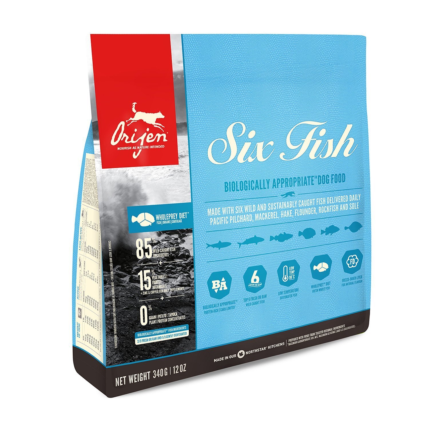 Полноценный и сбалансированный корм для собак всех пород и возрастов. Уникальное разнообразие свежей цельной рыбы, выловленной на воле близ острова Ванкувер. Корм ORIJEN SIX FISH содержит 38% высокопитательных белков и всего 18% низкогликемических углеводов, что обеспечивает собакам всех возрастов рацион, соответствующий их эволюционным и биологическим потребностям. В отличие от всех других кормов для собак, корм ORIJEN на 2/3 состоит из СВЕЖЕЙ (охлаждённой, без консервантов) или СЫРОЙ (быстрозамороженной, без консервантов) рыбы, включая 6 первых ингредиентов. 1/3 свежей цельной рыбы бережно высушивается при 90°С для получения концентрированного источника высокопитательного белка, который невозможно обеспечить за счёт только свежей рыбы. Богатая питательными веществами свежая цельная рыба в соотношении WholePrey™, включая мышечные ткани, внутренности и хрящи, является источником практически всех питательных веществ, в которых нуждается собака — добавляется только цинк и медь. Добавление бережно сублимированной печени трески служит естественным усилителем запаха и вкуса корма ORIJEN, что делает его деликатесом даже для привередливых собак.