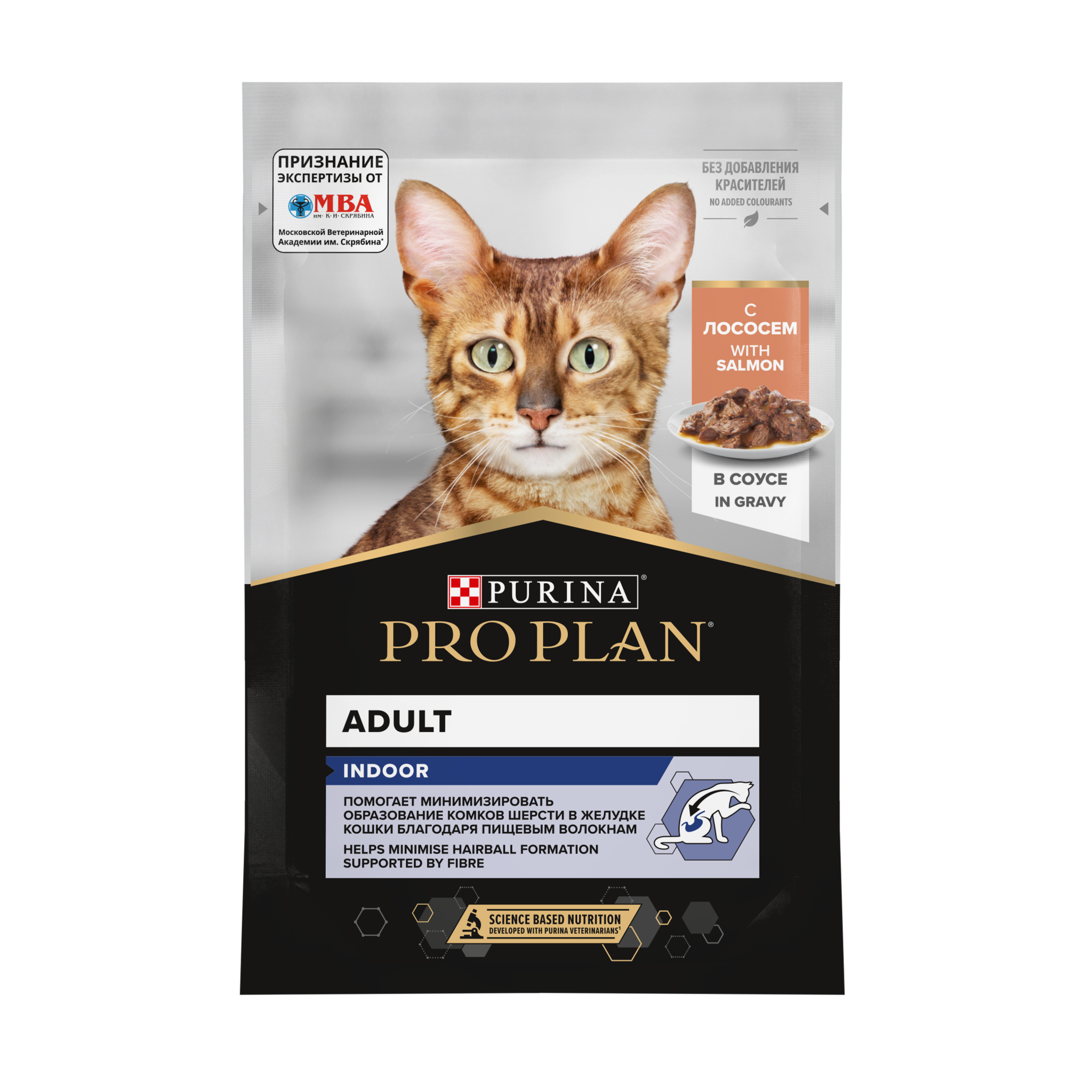 Команда квалифицированных ветеринарных специалистов разработала влажный корм PURINA® PRO PLAN® INDOOR для взрослых кошек, живущих дома. Этот полнорационный корм для кошек с лососем легко усваивается и полностью удовлетворяет потребности домашних кошек в витаминах, микроэлементах и питательных веществах.