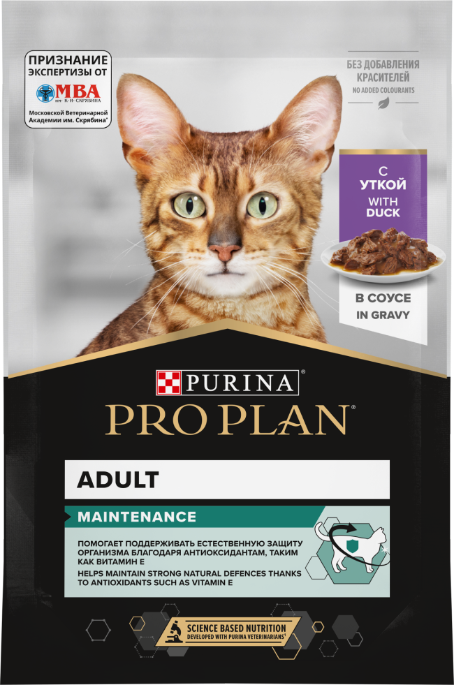 Состав: мясо и продукты переработки мяса (в том числе утка 4%), экстракты растительного белка, рыба и продукты переработки рыбы, аминокислоты, минеральные вещества, продукты переработки растительного сырья, масла и жиры, загустители, различные сахара, клетчатка, витамины, красители.