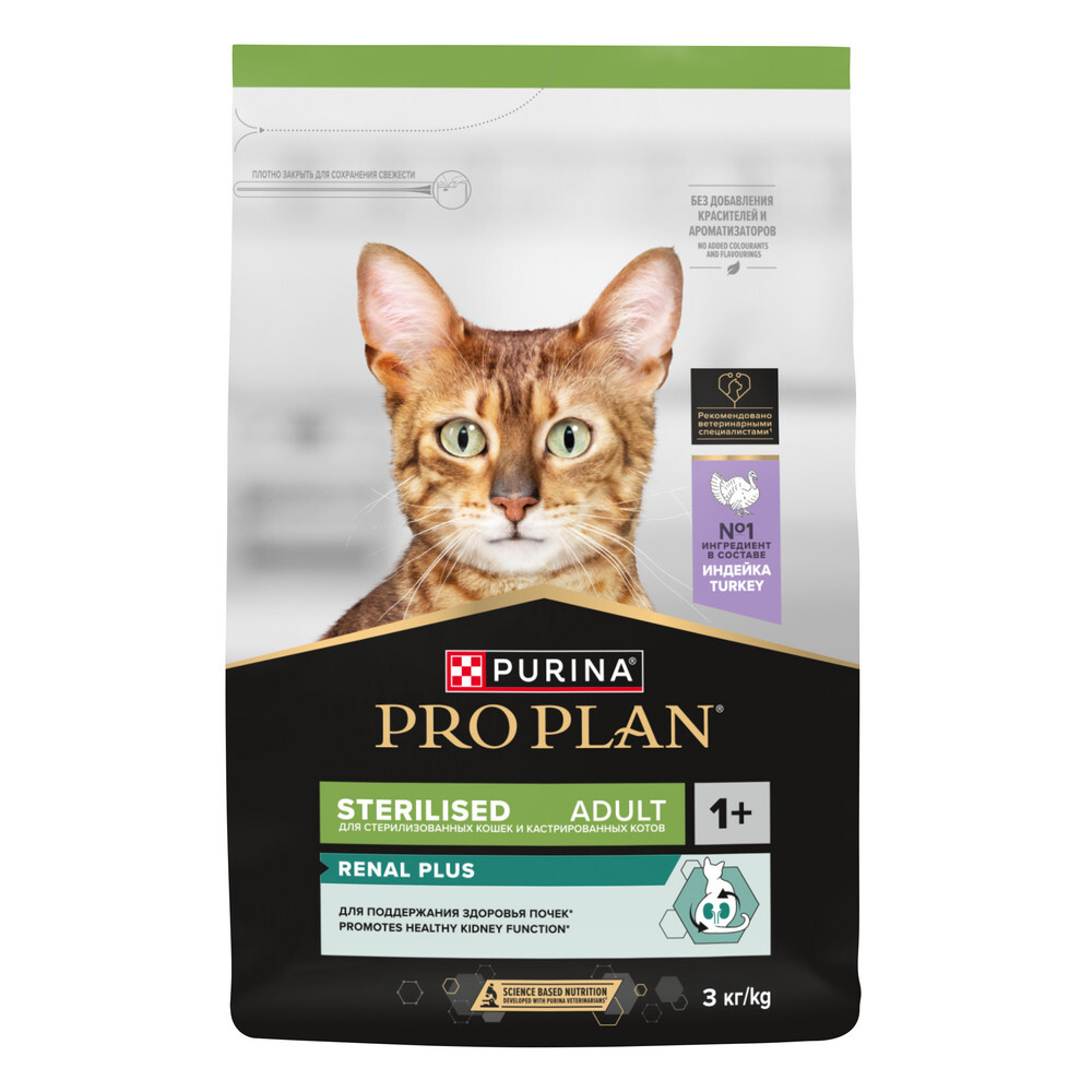 Команда квалифицированных ветеринарных специалистов разработала рацион PRO PLAN® Sterilised RENAL PLUS для взрослых стерилизованных кошек для поддержания здоровья почек.