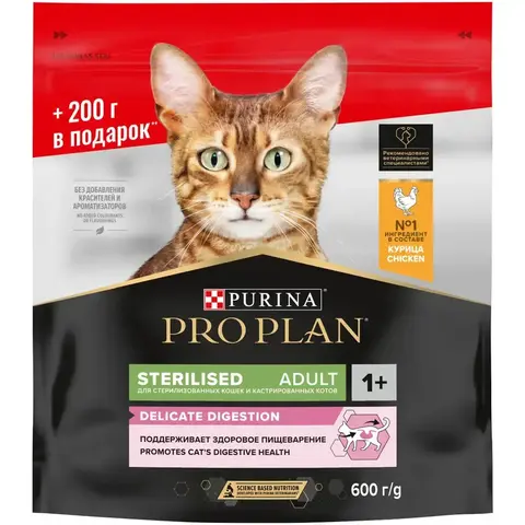 Команда квалифицированных ветеринарных специалистов и диетологов разработала сухой корм для стерилизованных кошек с чувствительным пищеварением или особыми предпочтениями в еде PRO PLAN® Sterilised DELICATE DIGESTION. Этот сбалансированный полнорационный сухой корм легко усваивается и содержит специальные компоненты, поддерживающие работу пищеварительной системы.