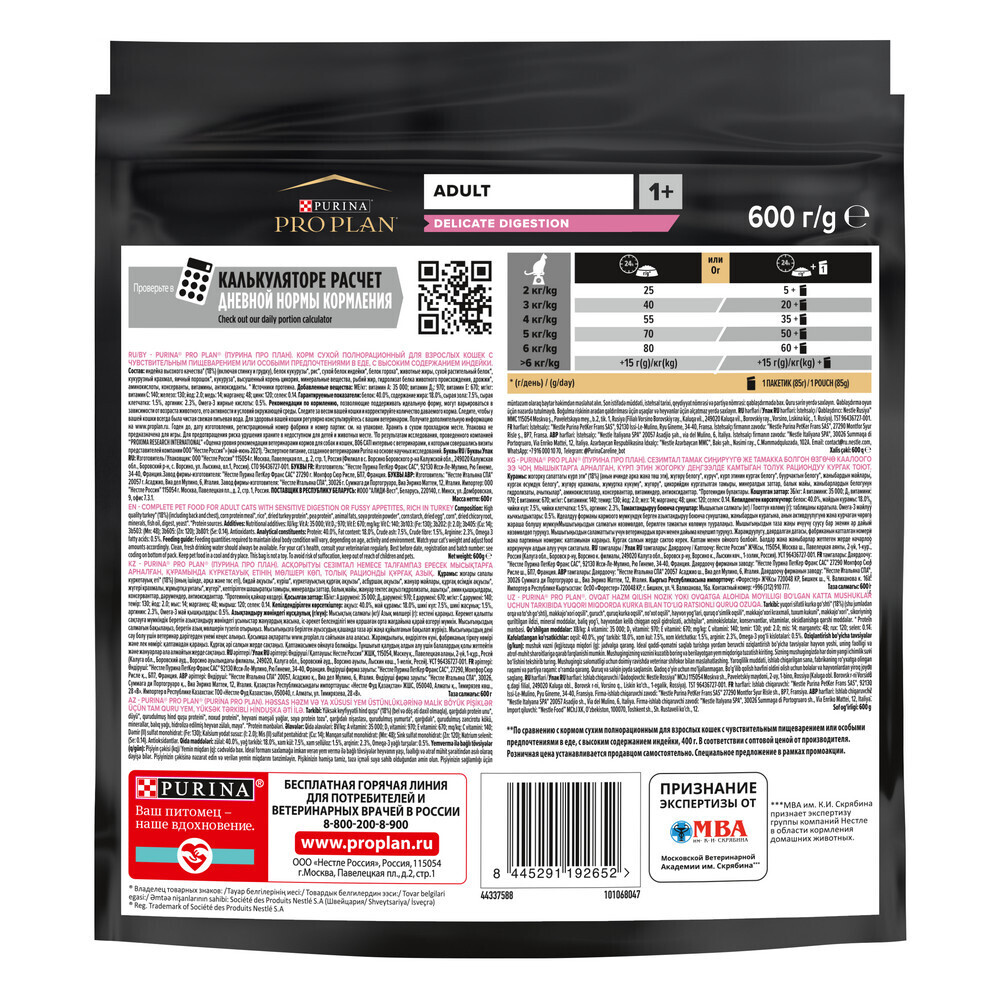 Рассчитайте индивидуальную норму кормления в калькуляторе по QR-коду на оборотной стороне упаковки. Оптимальная порция зависит от размеров, образа жизни, возраста и состояния здоровья питомца. Если вы впервые переходите на корм PRO PLAN®, воспользуйтесь рекомендациями в карточке товара или проконсультируйтесь с ветеринарным специалистом.