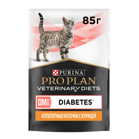 PRO PLAN® VETERINARY DIETS (Про План Ветеринари Даетс) DM St/Ox. Корм консервированный полнорационный диетический для взрослых кошек при диабете, с курицей. Корм рекомендуется для регулирования потребления глюкозы (сахарный диабет) с низким содержанием "быстрых" углеводов.