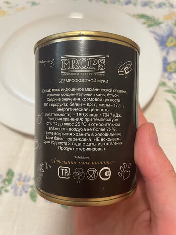 Большинство специалистов сходится во мнении, что залогом здоровья и долголетия домашних животных, в первую очередь является правильное питание. Руководствуясь этим принципом, совместными усилиями специалистов в области ветеринарии, кормления животных, а так же производителей мясных консервов была разработана линейка правильного и полезного питания для собак PROPS. PROPS — это базовое питание (корма основного рациона), которое идеально подходит для ежедневного использования. Вся продукция под торговой маркой PROPS изготавливается только из высококачественных мясных ингредиентов которые могут употребляться в пищу людьми — «Human Grade». Давая питомцу корма PROPS, хозяева могут быть спокойны, и точно знать, что их любимец не получит в пищу мясокостную муку, усилители вкуса, ароматизаторы, консерванты, красители или какие-либо еще вредные добавки и ингредиенты. Выбирайте для Вашего зверя всегда качественное и безопасное питание, и он отблагодарит Вас за это своим отличным самочувствием и хорошим настроением! Корма основного рациона Только высококачественные мясные ингридиенты подходящие для употребления людьми «Human Grade» Без мякостной муки Правильное питание, как залог здоровья питомца Не содержит красителей, консервантов, усилителей вкуса Индейка 70%Говядина 20% Подробный обзор тут.