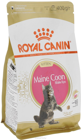 Сухой корм Royal Canin "Maine Coon Kitten" - полнорационный корм для котят породы мейн-кун в возрасте от 3 до 15 месяцев.Фаза роста котят мейн-куна в силу их уникального экстерьера более продолжительна, чем у кошек других пород. Удивительный факт: трехмесячный мейн-кун весит около 2 кг — почти вдвое больше, чем котята других пород в этом возрасте! Длительный период роста. В силу своей особой комплекции котенок породы мейн-кун достигает зрелости только к 15 месяцам или даже позже. Длительный период роста означает, что диета для котят должна отвечать их специфическим потребностям в энергии: это обеспечит гармоничное и сбалансированное развитие. Для того чтобы обеспечить максимально сбалансированное развитие, следует заказать онлайн специальный корм, подходящий для этой породы. Чемпион по весу среди котят. Уже очень скоро котенок мейн-куна опережает по весу своих сверстников — представителей других пород кошек. Постепенно формируются массивные кости и мощные мышцы. Особо крупные самцы породы мейн-кун весят около 10 кг! Необыкновенно крупная мощная челюсть. Уже с раннего возраста котят мейн-куна отличает характерная для породы челюсть. Для правильного питания требуются крокеты соответствующего размера и формы. Maine Coon Kitten легко купить в магазинах наших партнеров. Выбирая Main Coon Kitten , вы получаете сбалансированный корм для котят мейн-кунов. Поддержание здоровья в период длительного роста. Котятам породы мейн-кун свойствен долгий период роста. В течение этого времени им необходим корм с особым нутриентным профилем и оптимальной калорийностью. Продукт MAINE COON KITTEN позволяет поддерживать здоровье костей и суставов котят благодаря оптимизированному содержанию белков и сбалансированному составу минеральных веществ и витаминов (кальция, фосфора, витамина D). Здоровье пищеварительной системы. Продукт способствует поддержанию баланса кишечной флоры и кишечной переносимости благодаря наличию пребиотиков и белков с высокой усвояемостью (L.I.P.).Поддержка естественной защиты. Естественная защита организма поддерживается благодаря эксклюзивному комплексу антиоксидантов. Специально для крупных челюстей. MALACHITE 9 — крупная крокета, специально разработанная для котят породы мейн-кун с массивными челюстями. Крокеты такого размера приходится тщательно разгрызать, что позволяет поддержать гигиену ротовой полости котят.Состав: дегидратированное мясо птицы, рис, животные жиры, изолят растительных белков, кукуруза, гидролизат белков животного происхождения, растительная клетчатка, дрожжи, свекольный жом, рыбий жир, минеральные вещества, соевое масло, фруктоолигосахариды, оболочка и семена подорожника, гидролизат дрожжей (источник мaннановых олигосахаридов), масло огуречника аптечного, экстракт бархатцев прямостоячих (источник лютеина), гидролизат из панциря ракообразных (источник глюкозамина), гидролизат из хряща (источник хондроитина). Добавки (в 1 кг): питательные добавки: витамин A: 28700 МЕ, витамин D3: 800 МЕ, E1 (железо): 36 мг, E2 (йод): 3,6 мг, E4 (медь): 5 мг, E5 (марганец): 47 мг, E6 (цинк): 140 мг, E8(селен): 0,08 мг; консерванты, антиоксиданты.