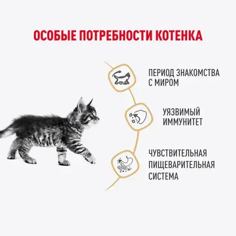 Способствует укреплению естественных защитных механизмов котенка благодаря сбалансированному содержанию питательных веществ.