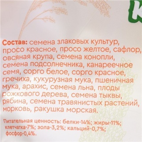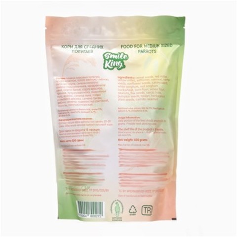 Производитель: Smile King; Габариты: 9 x 15 x 24; Страна: Россия; В боксе: 8 шт; Состав: См. на упаковке; Материалы: см. на упаковке; Фасовка: по 1 шт; Индивидуальная упаковка: Без упаковки; Сертификат: РСТ; Тип корма: Основной; Назначение: Для средних попугаев; Вид: Зерновой; Темпер. ограничение НЕ НИЖЕ ℃: +1; Темпер. ограничение НЕ ВЫШЕ ℃: +30 Корм Smile King для средних попугаев изготовлен в Беларуси из экологически чистого, отборного сырья. Состав разработан с особым вниманием к пропорциям витаминов и необходимых продуктов для полноценного рациона средних попугаев. * Гречиха содержит много магния, а также калий, фосфор, йод, цинк, фтор, молибден, кобальт, а также витамины В1, В2, В9 (фолиевую кислоту), PP, витамин Е; * Рис полезен для активизации правильного обмена веществ, своевременного развития организма и укрепления иммунной̆ системы; * Изюм обладает бактерицидным, действием. Улучшает работу печени и очищает организм от токсинов. Основу рациона попугаев средних размеров в дикой̆ природе составляют травы и зерна, также в качестве подкорма они используют ягоды, фрукты и семечки. В наших кормах для попугаев средних размеров вы найдете сбалансированный состав, в котором присутствуют все необходимы витамины, минералы, фрукты и семена.