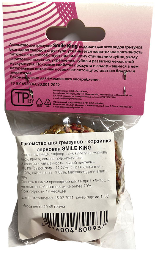 Натуральные лакомства для грызунов - Зерновая корзинка Smile King 40 г - это идеальное решение для ваших питомцев. Серия натуральных лакомств для грызунов - дает питомцу здоровое витаминизированное питание, а Вам - уверенность в надежности премиум продукта.