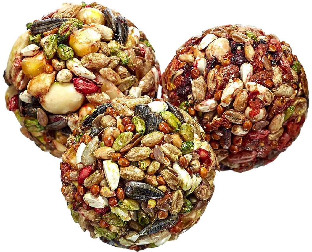 Лакомство для грызунов "Шарик зерновой + овощной + фруктово-ореховый" являются полезным дополнением к основному рациону. В них содержатся те ингредиенты, которые не входят в состав повседневного корма. То есть лакомства дарят вкусовое разнообразие, каждое знакомство с новым лакомством становится для птиц увлекательным приключением