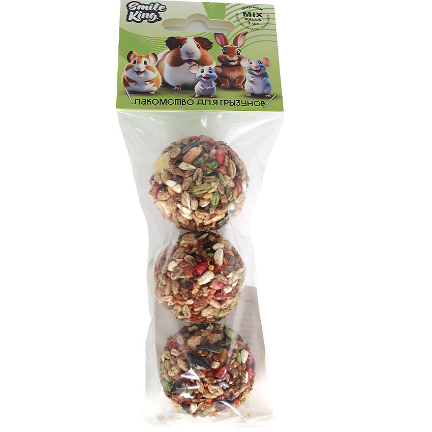 Натуральные лакомства для грызунов - Шарики MIX Smile King 75 г (овощной, зерновой, фруктово-ореховый) - это идеальное решение для ваших питомцев. Серия натуральных лакомств для грызунов - дает питомцу здоровое витаминизированное питание, а Вам - уверенность в надежности премиум продукта.