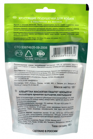 Хрустящие подушечки для кошек с паштетом из лосося – это вкусное и полезное лакомство. Паштет, содержащийся внутри каждой подушечки, имеет мягкую однородную консистенцию в виде мусса и неповторимый нежный вкус. Благодаря бережной технологии изготовления паштета, удалось сохранить полезные свойства лосося, поэтому лакомство богато ценным белком, важнейшими минералами и витаминами.