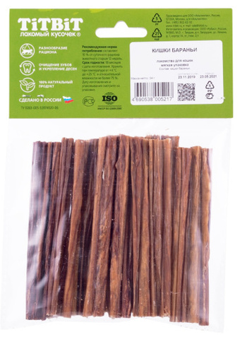 Высушенные бараньи кишки в виде трубочек длиной 11 см. Легкоусвояемое лакомство, богатое витаминами и ферментами микрофлоры кишечника овец. Имеют большую энергетическую ценность из-за повышенного содержания жира. Богаты легкопереваримыми протеинами, которые содержат все незаменимые аминокислоты и потому усваиваются на 90-95%. Содержат минеральные вещества в большем количестве, чем все остальные продукты (в том числе кальций, магний и фосфор), жирорастворимые витамины, а также водорастворимые витамины.