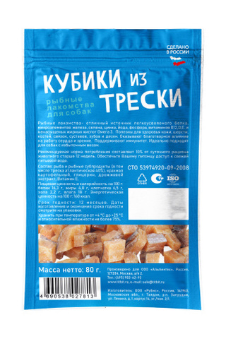 Рыбные лакомства - отличный источник легкоусвояемого белка, микроэлементов: железа, селена, цинка, йода, фосфора, витаминов В12,D,Е. и ненасыщенных жирных кислот Омега 3. Полезны для здоровья кожи, шерсти, костей, связок, суставов, зубов и десен. Оказывают благотворное влияние на работу сердца и зрение. Поддерживают иммунитет. Идеально подходят для собак с избыточным весом.