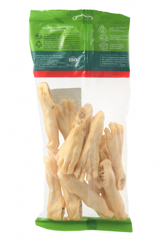 Высушенная кроличья лапка. Упаковка содержит 10 штук. Изделие содержит кожу, много кости, жира, коллагеновой и соединительной ткани, а также прослойки мышечной ткани. Обеспечивает дополнительное поступление в организм маленьких собак составных элементов для роста, развития и поддержания в норме суставов. Превосходно очищает зубы. Прекрасная игрушка, сохраняющая в целости предметы интерьера и личные вещи. Изделие содержит трубчатую кость и не предназначено для полного поедания. Как только собака съела футляр из кожи, сухожилий и мышц – необходимо заменить лакомство на новое.