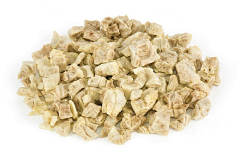 Мелко порезанные кусочки высушенного говяжьего легкого. Высокое содержание микроэлементов и соединительной ткани дополняет удовольствие собаки от нежного лакомства. Легкие очень вкусны, малокалорийны и замечательно усваиваются организмом. Легкие содержат практически такой же набор витаминов, как и мясо, но зато гораздо менее жирные. Оказывают положительное воздействие на состояние кожи, шерсти и общий обмен веществ. Кусочки очень удобно использовать в качестве поощрения при дрессуре, и просто на прогулках. Для собак всех пород и возрастов. Особенно рекомендуется для собак с неполной зубной формулой и возрастными изменениями зубочелюстного аппарата. Благодаря вкусовым качествам и воздушной структуре является одним из самых любимых лакомств для наших четвероногих друзей.