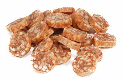 Колбасный двор для собак TitBit – это высококачественные мясные деликатесы, которые отлично подходят в качестве поощрения животного или просто побаловать своего любимца. Содержание мяса и мясных субпродуктов 92%. Не содержат соль и искусственных компонентов. Единственные мясные колбасы, представленные в виде нарезки!