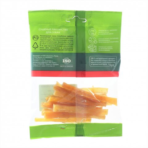 Упаковка содержит высушенные говяжьи сухожилия, тонко нарезанные соломкой. Источник необходимых для роста и развития суставно-связочного аппарата компонентов. Оказывает положительное воздействие на хрящевую и костную ткань. Улучшает рост и развитие опорно-двигательного аппарата.