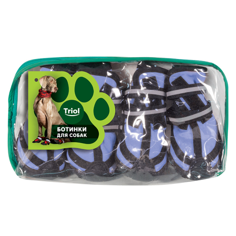 Стильный комплект ботинок для собак из неопрена с функциональной прорезиненной подошвой - незаменимый аксессуар индивидуальной защиты лап животного от воздействия агрессивных жидкостей, дорожных химреагентов, бензинов и масел на проезжей части дорог. Прочные, комфортные и непромокаемые, они сохраняют лапы собаки чистыми и сухими в ненастную погоду и защищают их от истирания о твердое покрытие при длительных и интенсивных нагрузках. Размер изделия: 45х45х55 мм. Цвет: синий.