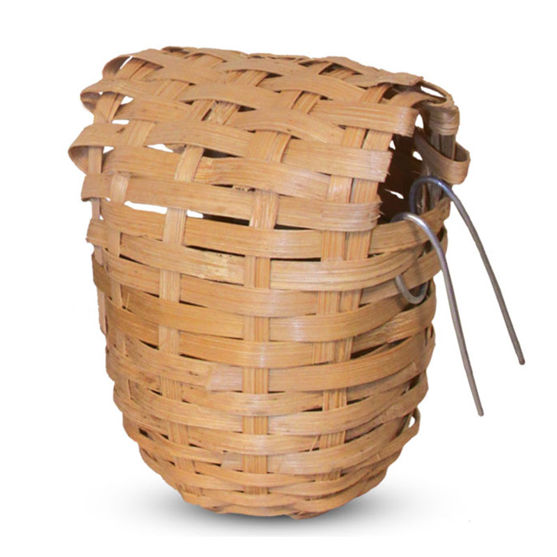 Гнездо-корзина из лозы идеально подойдет для птиц малых и средних размеров, таких как: канарейки, кеноры, волнистые попугаи, амазоны, кареллы и др. Шахматный порядок плетения и жесткий каркас препятствуют поломке гнезда, крыша предотвращает растаскивание яиц другими птенцами и обеспечивает комфортное уединение, а удобное крепление изделия к прутьям клетки позволяет значительно экономить пространство. Цвет: соломенный. Размер: d70х110мм.
