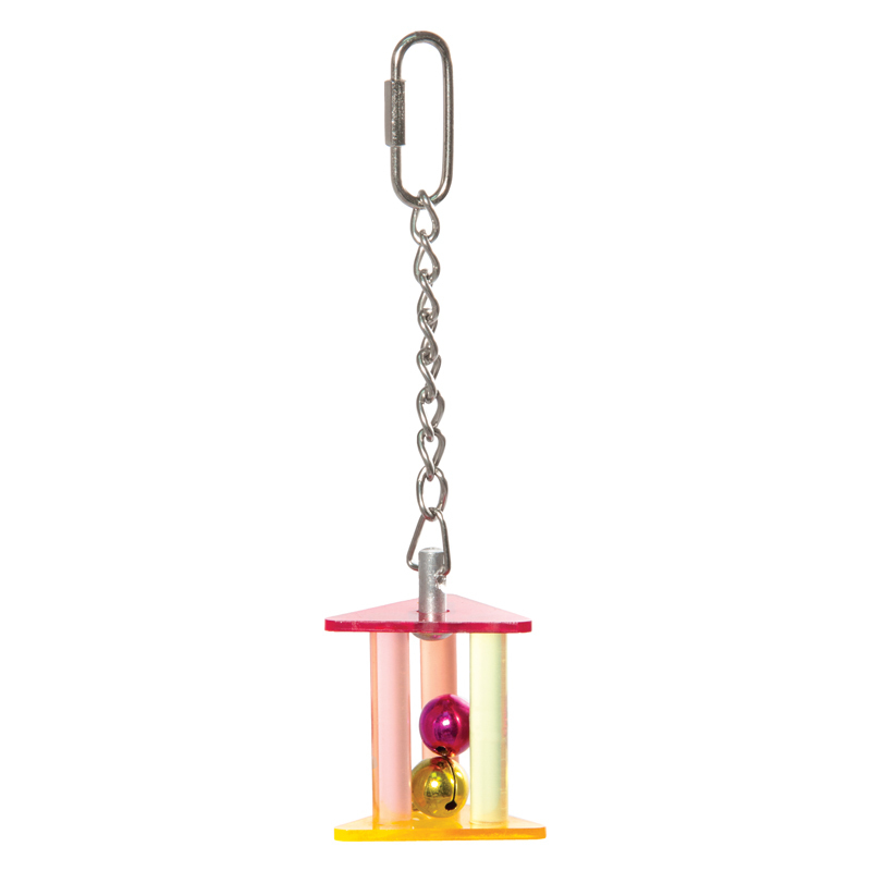 Игрушка для птиц в виде подвески с геометрическими фигурами и двумя бубенчиками в центре. Крепление: карабин. Цвет: в ассортименте. Размер: 60/165*45мм.