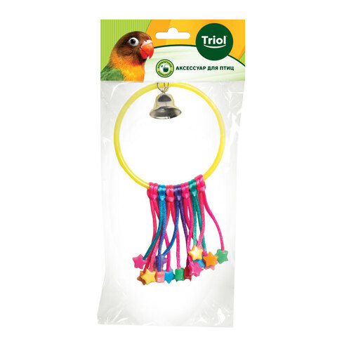 Игрушка для птиц в виде обруча с колокольчиком и подвесками из нитей с бусинками на них. Цвет: в ассортименте. Размер: 240х75мм.
