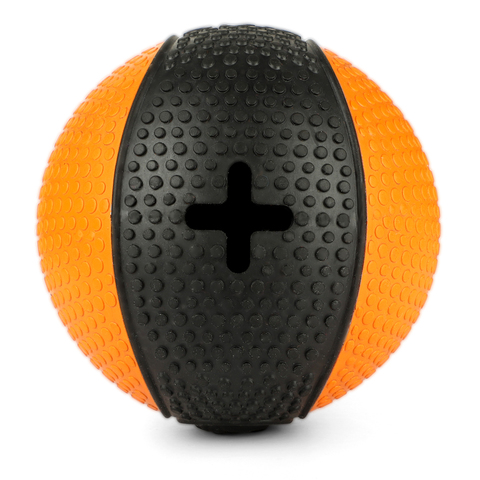 Суперпрочная игрушка для собак крупных пород выполнена в форме мяча. Эта «долгоиграющая» игрушка изготовлена из нейлона и резины повышенной прочности и станет идеальным решением для четвероногих обладателей крепких зубов и мощных челюстей. Игрушка оснащена отверстиями для лакомств, что станет дополнительным фактором привлечения внимания вашей собаки в процессе игры. Цвет изделия: черно-оранжевый. Вес изделия: 340г. Размер изделия: d110мм