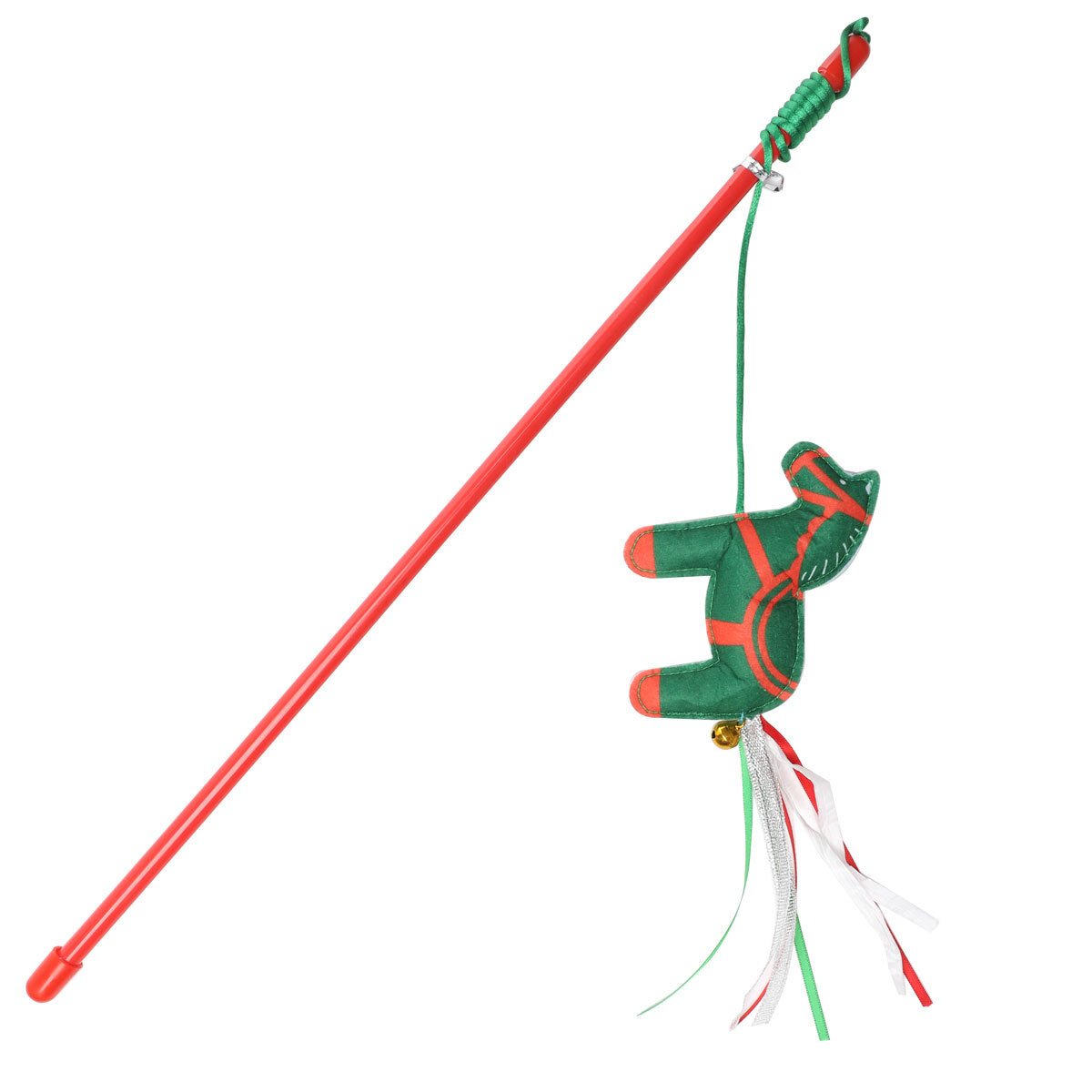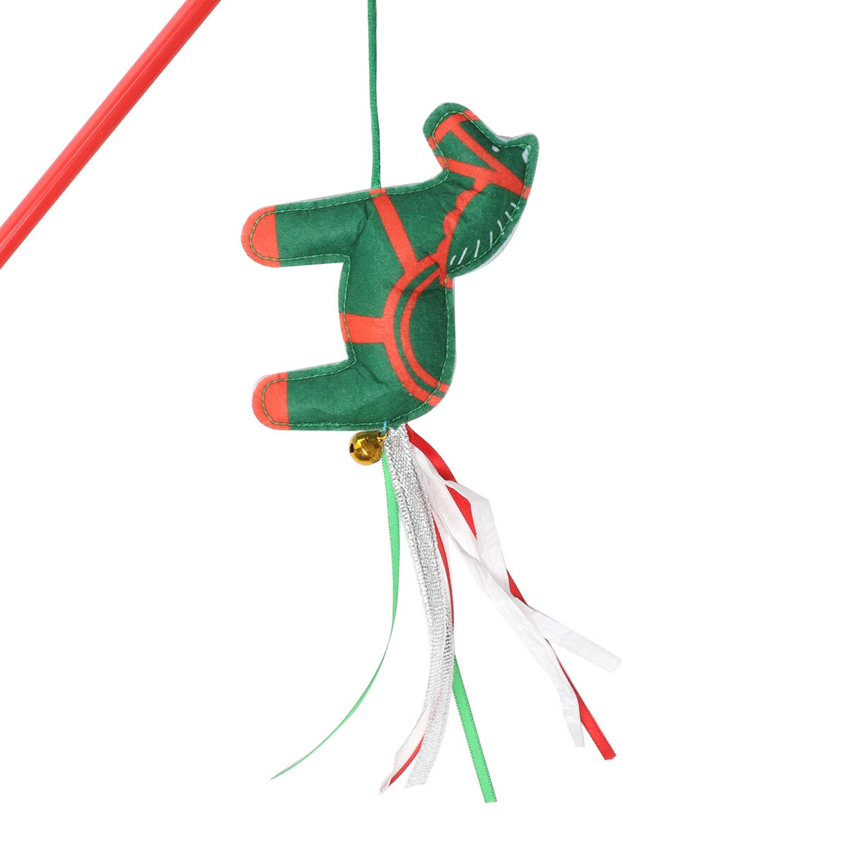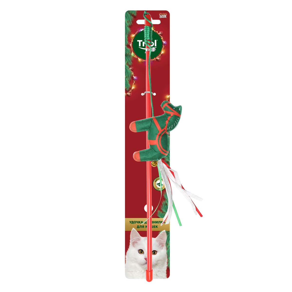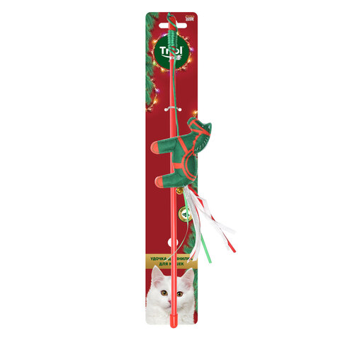 Яркая и функциональная удочка-дразнилка с кошачьей мятой - это всегда актуальный аксессуар для усатых-полосатых. Такая удочка и развлекает питомца, и дрессирует одновременно, помогая кошке также держать мыщцы в тонусе, развивать сообразительность и реакцию. Изделие имеет прочную основу и декорирована оригинальными элементами в новогодней стилистике. Подвижная игрушка на шелковистом шнуре с мелодичным бубенчиком и яркими ленточками привлечет даже самых пассивных кошечек, вовлекая их в процесс веселой охоты. Удочка "Лошадка" станет оригинальным подарком вашему любимцу к Новому году! Цвет: красно-зеленый. Размер игрушки: 90*85*15мм.