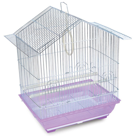 Оригинальная клетка для птиц с фигурной крышей - полезный аксессуар для владельцев пернатых питомцев. Надежная, просторная и очень удобная, такая клетка займет достойное место в любом интерьере, отвечая всем жизненным потребностям домашних любимцев. В комплектацию изделия входят 2 кормушки, 2 пластиковые жердочки и качели. Клетка оборудована удобной ручкой для переноски и специальным пластиковым наружным поддоном, облегчающим процесс уборки. Цвет: голубой, сиреневый, зеленый.