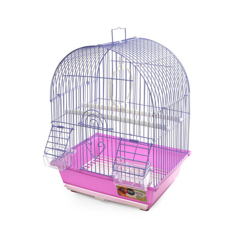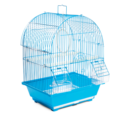 Эффектная клетка для птиц с фигурной крышей - полезный аксессуар для владельцев пернатых питомцев. Прочная и удобная, такая клетка занимает совсем немного места и отвечает всем потребностям пернатых. В комплектацию изделия входят 2 внешние кормушки, 2 жердочки и качели. Клетка оборудована удобной ручкой для переноски и специальным пластиковым наружным поддоном, облегчающим процесс уборки. Размер изделия: 300х230х390мм. Цвет в ассортименте.