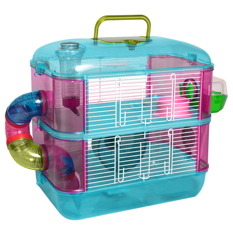 Яркая двухэтажная клетка прямоугольной формы - целый развлекательный комплекс для грызуна, который занимает немного места и отлично подходит для мелких домашних животных вроде крыс, мышей и хомяков. В комплектацию изделия также входят: пластиковая миска, поилка с носиком, уютный домик, труба-тоннель и беговое колесо. Кроме того, клетка оборудована удобной ручкой на крыше, облегчающей процесс переноски изделия. Размер изделия: 400х260х400мм.