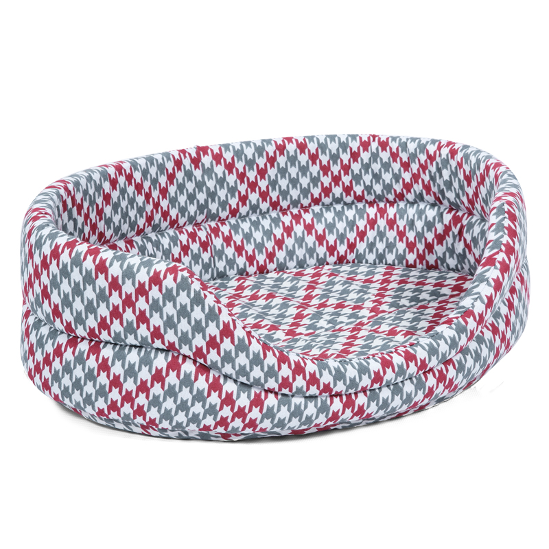 Мягкая лежанка овальной формы с бортом средней высоты (12 см - по задней стенке и 6 см - при "входе"). Удобная и аккуратная лежанка набита поролоном, поддерживающим ее постоянную форму.