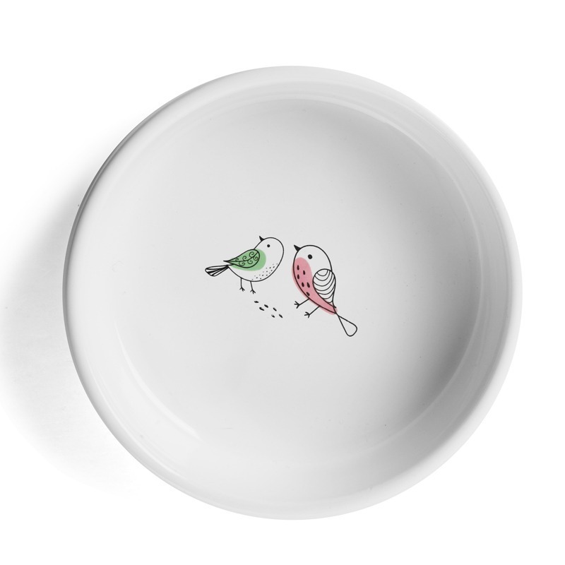 Стильная и функциональная миска для кошек и собак мелких пород выполнена из высококачественной керамики оригинальной расцветки. Такая миска идеально подойдет как для воды, так и для корма любой консистенции. Она комфортна для питомца и легко моется под струей проточной воды с использованием моющих бытовых средств. А оригинальный дизайн позволит ей стать украшением любого интерьера. Цвет изделия: белый. Размер изделия: d дна - 115мм; d верхней части - 135мм; высота - 40мм. Объем - 0,35л.