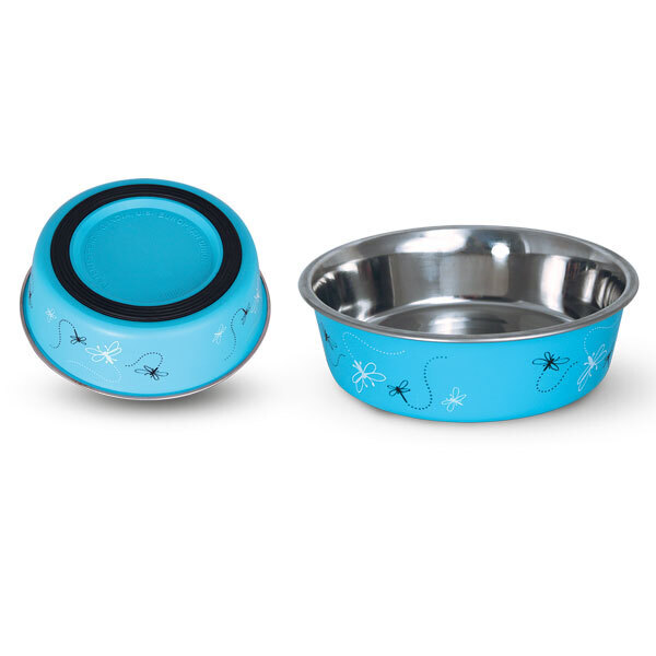 Стильная круглая миска из нержавеющей стали для кошек и собак небольших пород. Она идеально подходит как для воды, так и для корма разной консистенции. Миска комфортна для питомца и легко моется под струей проточной воды с использованием моющих бытовых средств. Прорезиненное основание обеспечивает максимальную устойчивость, препятствуя скольжению изделия во время использования, а оригинальный принт сделает такую миску украшением любого интерьера. Цвет изделия: голубой. Объем: 0,75л. Размеры: 175*175*50мм.