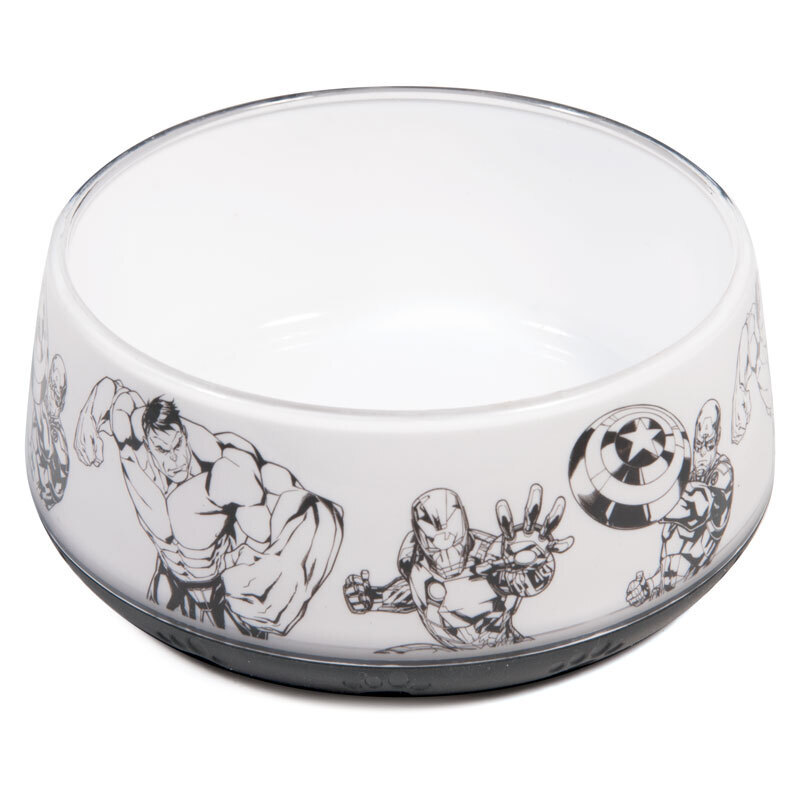 Эта стильная и функциональная миска отлично подходит для воды и корма любой консистенции. Выполненная из прочного пластика, она привлекает внимание выразительным принтом Marvel Мстители по внешнему борту. Функциональное противоскользящее дно изготовлено из термопластичной резины и декорировано изящными «лапками». Изделие комфортно для питомца и легко моется под струей проточной воды с использованием моющих бытовых средств. Цвет: белый. Размер изделия: d дна - 118мм; d верха - 105мм; высота - 50мм. Объем: 0,3л.