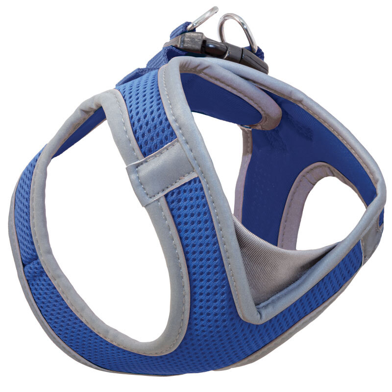 Мягкая и удобная шлейка-жилетка - функциональный аксессуар для четвероногих модников. Шлейка выполнена из высококачественного нейлона и имеет дышащую сетчатую поверхность, которая бережно прилегает к телу животного и хорошо пропускает воздух. Шлейка крепится при помощи широкой липучки и удобной пластиковой застежки на спине питомца. Для максимального комфорта на груди предусмотрена эластичная вставка. Яркий синий цвет и окантовка из светоотражающего материала делают питомца заметным не только в пасмурную погоду, но и в ночное время. Размер шлейки: XS (обхват груди 320-360мм). Цвет: синий.