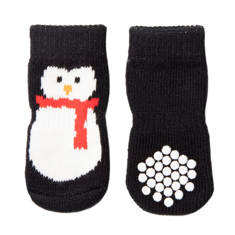 Домашние носочки с новогодним дизайном "Пингвин" - подарят вам и вашему любимому питомцу новогоднее настроение, порадуют окружающих. Такие носочки ограждают интерьер от когтей любимца и, благодаря противоскользящему покрытию, позволяют четвероногому питомцу с комфортом передвигаться по паркету, кафелю и другим скользким покрытиям. Теплые, легкие и функциональные, эти носочки также отлично подойдут для согревания лапок питомца в зимний период, если их одеть под ботинки. Цвет: черно-белый с красным. Размеры изделия: 40*110мм.