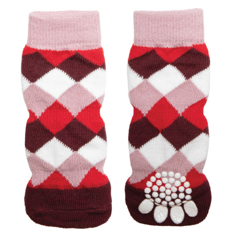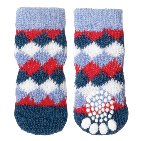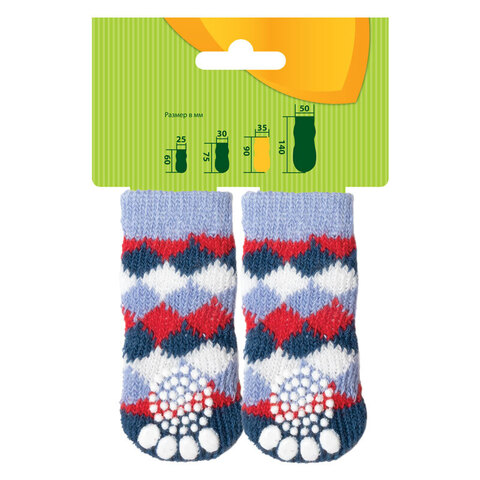 Домашние носочки с узором из ромбиков - не только стильный, но и полезный аксессуар для вашего питомца. Такие носочки ограждают интерьер от когтей любимца и, благодаря противоскользящему покрытию, позволяют четвероногому питомцу с комфортом передвигаться по паркету, кафелю и другим скользким покрытиям. Теплые, легкие и функциональные, эти носочки также отлично подойдут для согревания лапок питомца в зимний период, если их одеть под ботинки. Цвет: красно-розовый, сине-красный. Размеры изделия: 35*90мм.