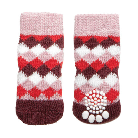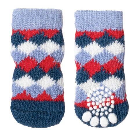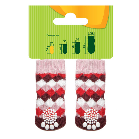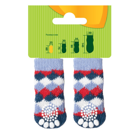 Домашние носочки с узором из ромбиков - не только стильный, но и полезный аксессуар для вашего питомца. Такие носочки ограждают интерьер от когтей любимца и, благодаря противоскользящему покрытию, позволяют четвероногому питомцу с комфортом передвигаться по паркету, кафелю и другим скользким покрытиям. Теплые, легкие и функциональные, эти носочки также отлично подойдут для согревания лапок питомца в зимний период, если их одеть под ботинки. Цвет: красно-розовый, сине-красный. Размеры изделия: 25*60мм.