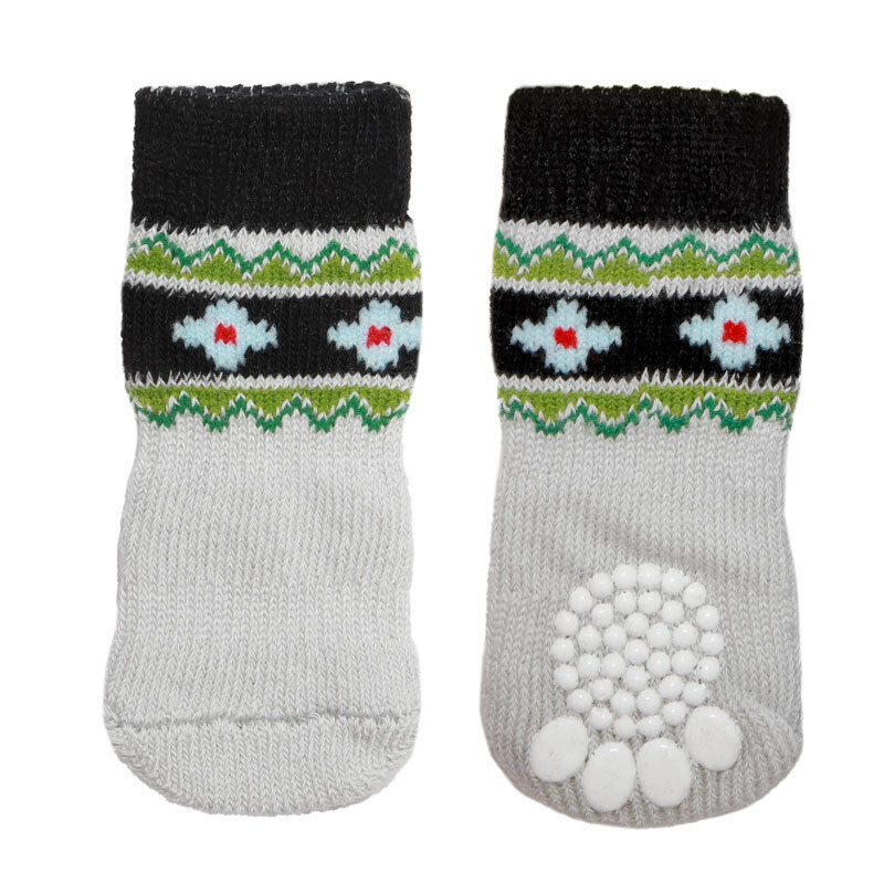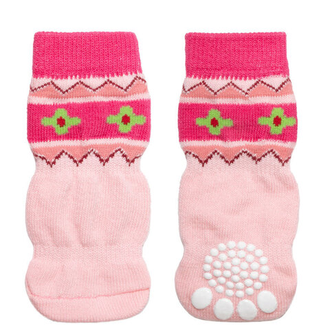Домашние носочки серого и нежно-розового тонов с узорами - не только стильный, но и полезный аксессуар для вашего питомца. Такие носочки ограждают интерьер от когтей любимца и, благодаря противоскользящему покрытию, позволяют четвероногому питомцу с комфортом передвигаться по паркету, кафелю и другим скользким покрытиям. Теплые, легкие и функциональные, эти носочки также отлично подойдут для согревания лапок питомца в зимний период, если их одеть под ботинки. Цвет: серый, розовый. Размеры изделия: 35*90мм.