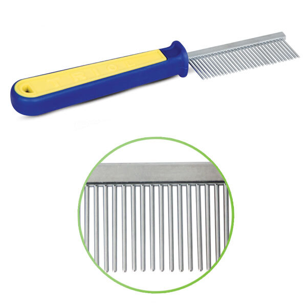 Расческа для животных серии "Спорт" идеально подходит для ухода за нежной, тонкой и гладкой шерстью питомцев. Используется для удаления уже выпавших волос и уменьшения линьки. Изделие имеет 52 металлических зубца одинаковой длины и удобную пластиковую ручку. Размер 200х35х25мм. Упаковка: пакет с клапаном.