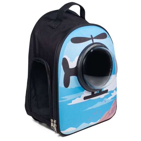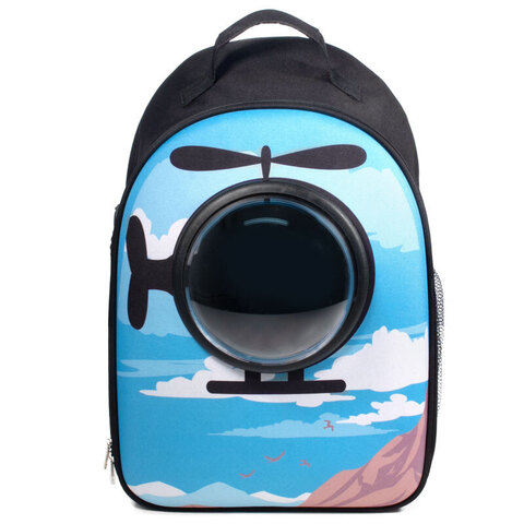 Этот оригинальный рюкзак с принтом "Вертолет" - не только отличный аксессуар для транспортировки кошек и собак небольших пород, но и по-настоящему стильный атрибут. Надежный и практичный, за счет жесткого каркаса и просторных габаритов он отлично справляется со своей задачей, а вентиляционная сетка и специальные отверстия гарантируют постоянную циркуляцию воздуха. А креативный дизайн с объемным иллюминатором позволит вашему питомцу с интересом наблюдать за происходящим вокруг. Максимальный вес животного: 7кг. Цвет: голубой. Размер: 450х320х230мм.