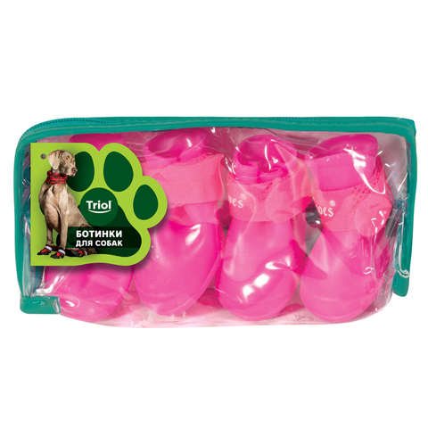 Стильный комплект резиновых сапожек для собак - незаменимый аксессуар индивидуальной защиты лап животного от воздействия агрессивных жидкостей, дорожных химреагентов, бензинов и масел на проезжей части дорог. Прочные, комфортные и непромокаемые, они сохраняют лапы собаки чистыми и сухими в ненастную погоду и защищают их от истирания о твердое покрытие при длительных и интенсивных нагрузках. Размер изделия: 55х45х55 мм. Цвет: розовый.