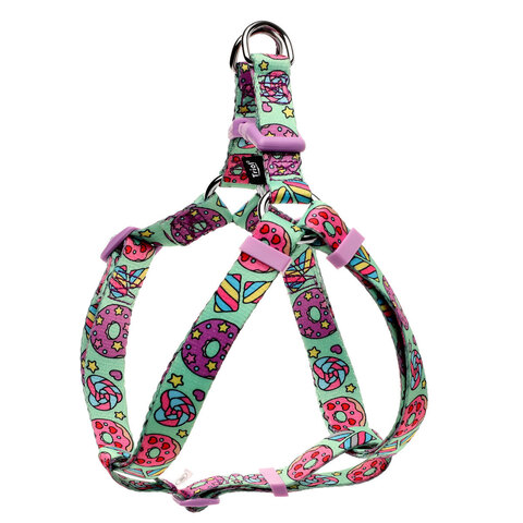 Универсальная шлейка "Пончики" изготовлена из высококачественного нейлона с использованием крепкой металлической и пластиковой фурнитуры. Шлейка двусторонняя, поэтому можно надевать ее то одной, то другой стороной вверх, меняя рисунок. Регулируемая шлейка Y-образной формы с надежной пряжкой обеспечивает комфортную фиксацию изделия на теле животного без причинения дискомфорта даже при постоянной носке. Цвет: бирюзово - фиолетово - розовый. Размер изделия: 20*530-770мм.