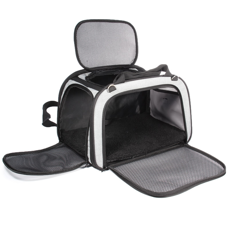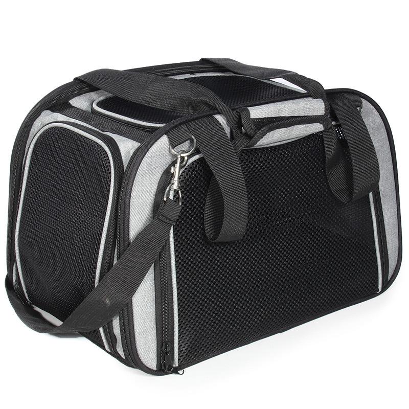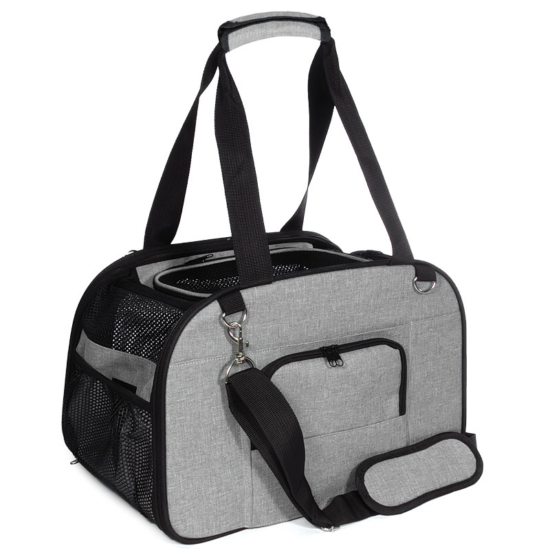 Эта стильная сумка - идеальное решение для путешествий с питомцем. Она отлично подходит для перевозки кошек и собак небольших пород, благодаря оптимальным габаритам не занимает много места, компактно складывается, что особенно важно при хранении. Отверстие с сеткой для циркуляции воздуха обеспечивает, в том числе, свободный доступ к питомцу. Размер: 430х280х280мм. Максимальная нагрузка: 7 кг.