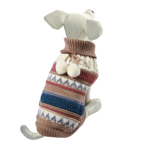 Теплый свитер с украшением в виде помпонов - это удобный и функциональный аксессуар для собак, который просто незаменим в холодную погоду. Изделие защитит вашего питомца от ветра и согреет в непогоду. Свитер имеет стильный дизайн, а универсальный и продуманный до мелочей фасон не стесняет движений питомца во время прогулки. Такой свитер с оригинальным узором станет украшением гардероба вашего питомца.