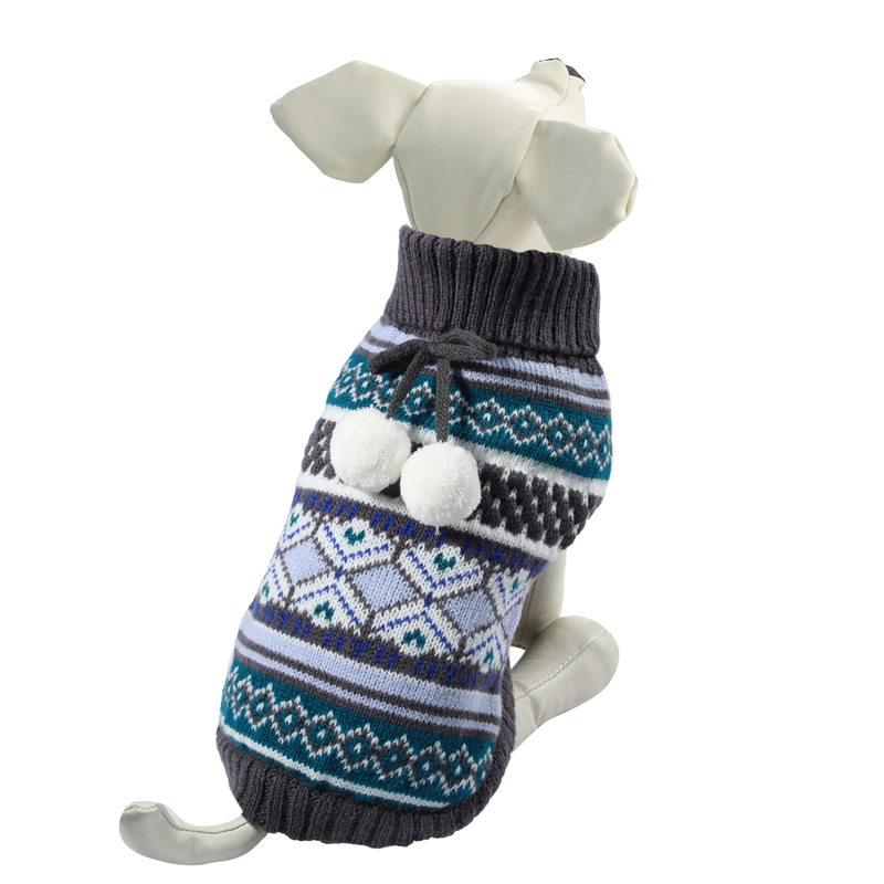 Теплый свитер с украшением в виде помпонов - это удобный и функциональный аксессуар для собак, который просто незаменим в холодную погоду. Изделие защитит вашего питомца от ветра и согреет в непогоду. Свитер имеет стильный дизайн, а универсальный и продуманный до мелочей фасон не стесняет движений питомца во время прогулки. Такой свитер с оригинальным узором станет украшением гардероба вашего питомца.