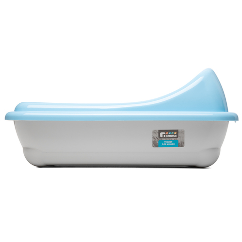 Туалет с высоким бортом - идеальный вариант для вашего четвероногого питомца. Съемный борт-рамка удобен для закрепления пластикового пакета, максимально упрощает уборку и предотвращает разбрасывание наполнителя при закапывании. Туалет изготовлен из высококачественного пластика и легко чистится под струей воды при помощи моющих бытовых средств. Размеры изделия: 455х350х200мм. Цвет съемного борта к серому лотку: голубой.